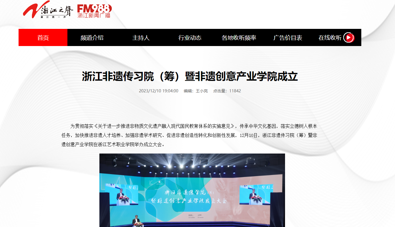 浙江之声:浙江非遗传习院(筹)暨非遗创意产业学院成立