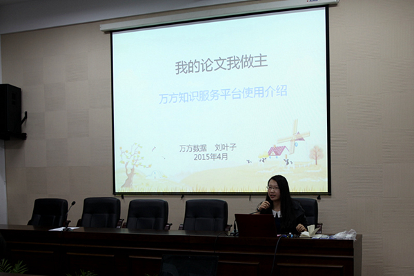 讲座中,读秀学术搜索培训专员徐鸽首先为师生详细介绍了“读秀”的特点和各项检索技巧,并简要介绍歌德电子书借阅机使用方法。随后,万方知识服务平台培训专员刘叶子以《我的论文我做主》为题,介绍了如何利用万方数据库帮助论文选题和写作。最后,川页科技有限公司的许建宾简要介绍了KUKE数字音乐图书馆和起点自主考试学习系统的情况,并与师生进行了愉快互动。