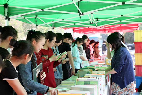 八号楼前人头攒动,一个个帐篷搭了起来,一摞摞书抱上桌面,图书现场展示推荐活动作为本届“读书月”的第一项内容率先亮相。共有1000多种社科、艺术、文学类最新图书参展,所有图书均打折向师生出售,可根据本人需要向图信中心推荐图书,由图信中心查重后统一购买,争取在一个月内上架供师生借阅。活动期间扫一扫图信中心新推出的微信公众号,便可得到精美礼品一份。此次图书现场展示推荐活动,师生读者踊跃购书荐书,个人购买图书近百册,荐购量近千次。