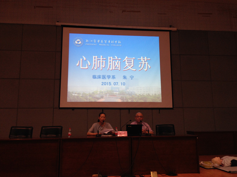 7月10日上午,浙江医学高等专科学院临床医学系朱宁副教授在图信中心一楼报告厅为学工队伍的老师们作《心肺脑复苏》专题安全救护知识讲座。