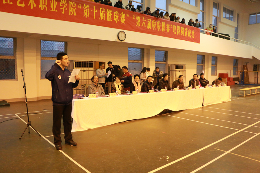 浙江艺术职业学院第十届篮球赛于12月7日晚在风雨操场热力开启。共有来自戏剧系、音乐系、舞蹈系、美术系、影视技术系、文管系共六支队伍参赛。副院长沈恒、纪委书记夏开堂等院系领导来到开幕式现场。