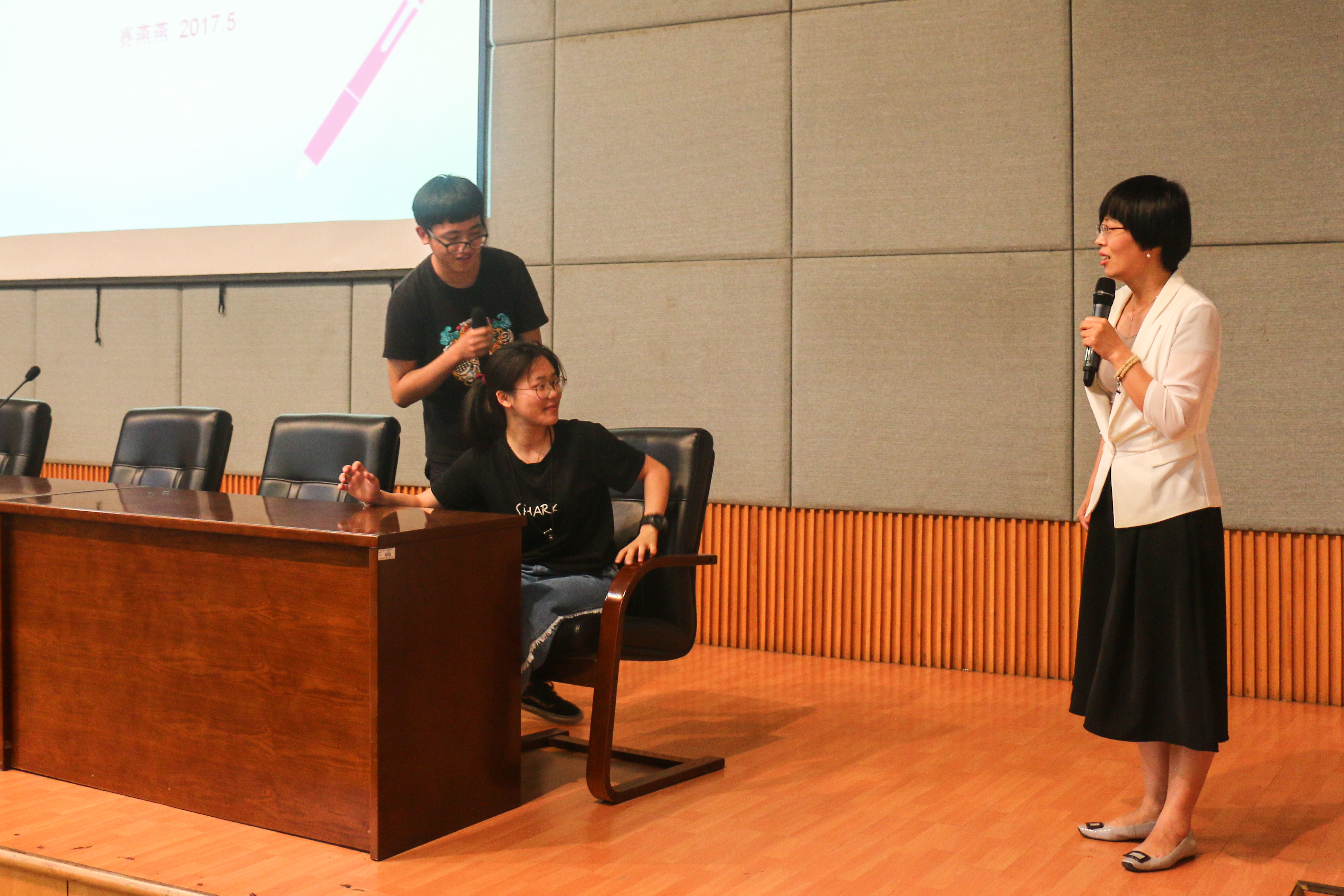 5月17日下午,院心理健康教育月活动在图信中心举行开幕仪式。开幕式上邀请浙江科技学院心理咨询中心主任赛燕燕开讲《沟通的艺术》。赛燕燕通过现场情景模拟、案例分析等,形象生动地展现了现实生活中遇到人际交往挫折该如何应对。她用自己的专业知识和经验,提出了许多中肯的建议和具有可操作性的思路。这样的讲座有助师生间更好地沟通。讲座气氛活跃,专业性很强,不少学生反映 “这样的讲座,就像医生的会诊,对于以后的人际交往和沟通有很大的帮助,希望这样的讲座能够经常举行。”