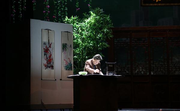 演出当晚,观众们早早就坐满了剧场,展演手册也被“扫荡”一空。一些观众在演出开始前还看着手机里的戏剧视频,偶尔自己跟着唱上几句。其中两位相携而来的老阿姨说,平时就爱看戏,没想到民营剧团的演出一点不像“草台班子”,今天第二次来看了。她们操着地道的杭州话说:“老伙伴们一齐来看戏的有十多个人呢!平时演出太少,票价也贵,只要有演出天气再热大家也出来了。”
