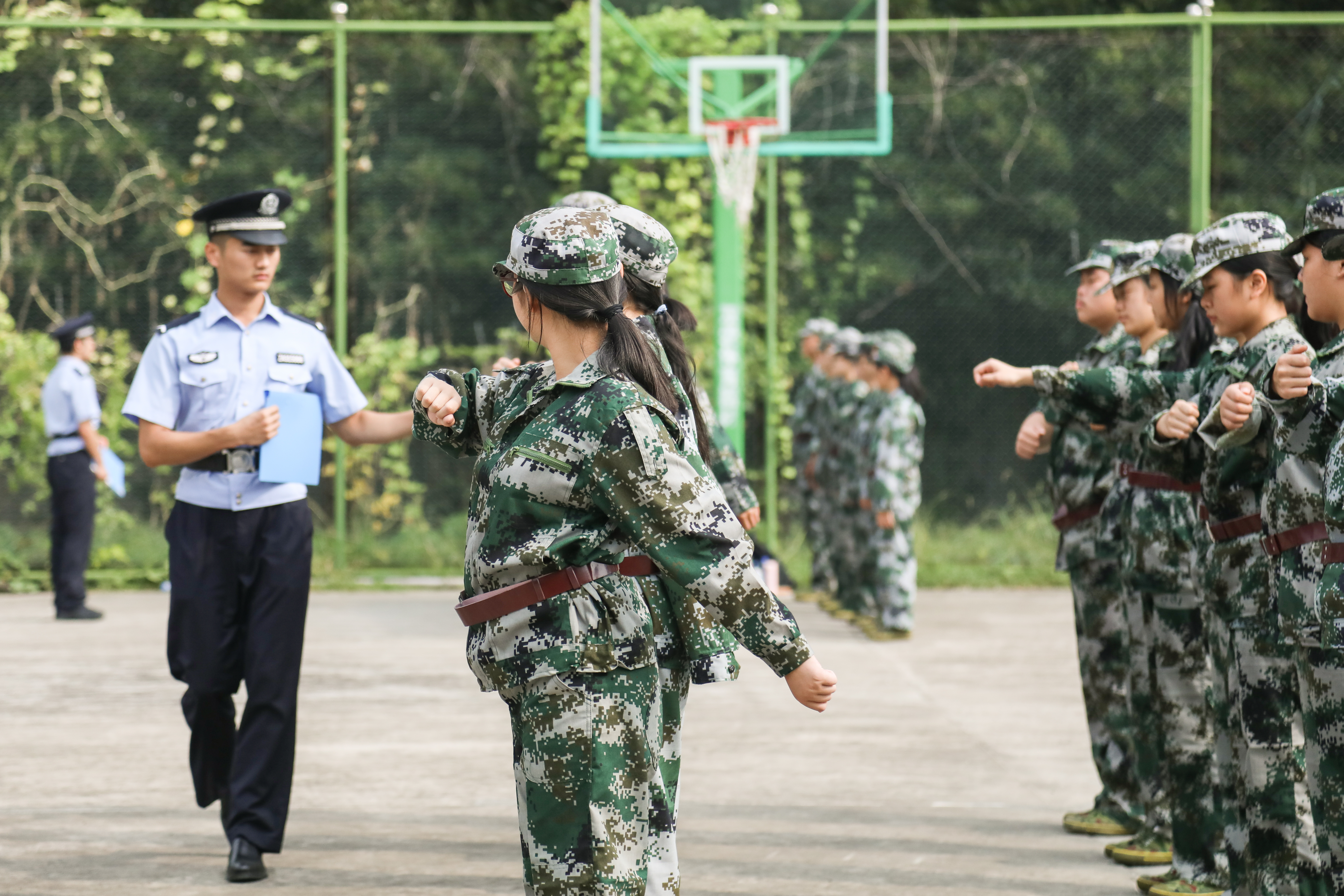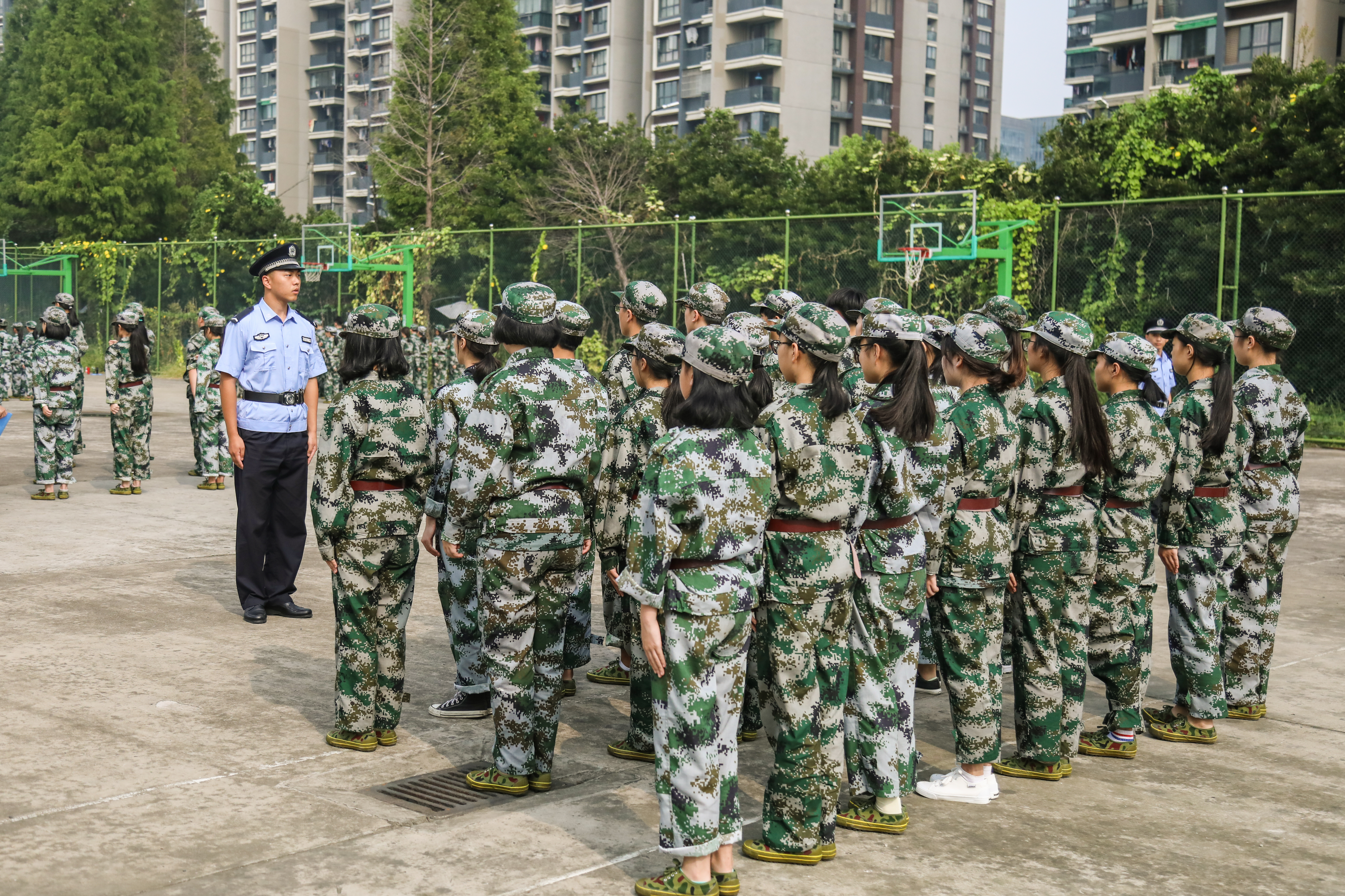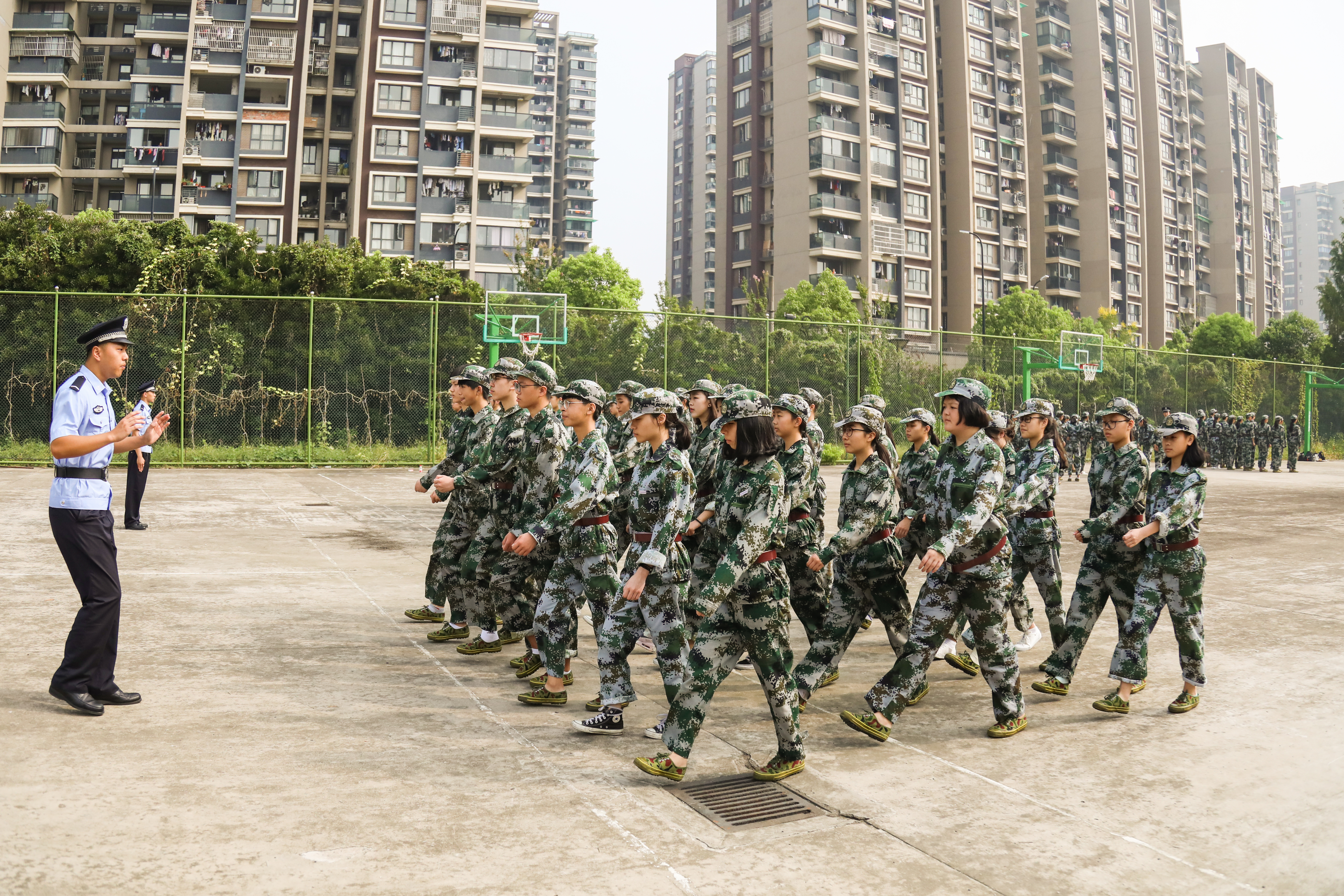 那一张张尤显稚嫩的脸庞仿佛一下子就变得成熟起来,他们坚定的眼神里蕴藏着一股不可言喻的力量,那股力量不停地鞭挞着他们在烈日下一遍遍地训练,尽管汗水打湿他们的鬓发,浸透了他们的衣衫,他们仍然随着指令做着整齐划一的动作。