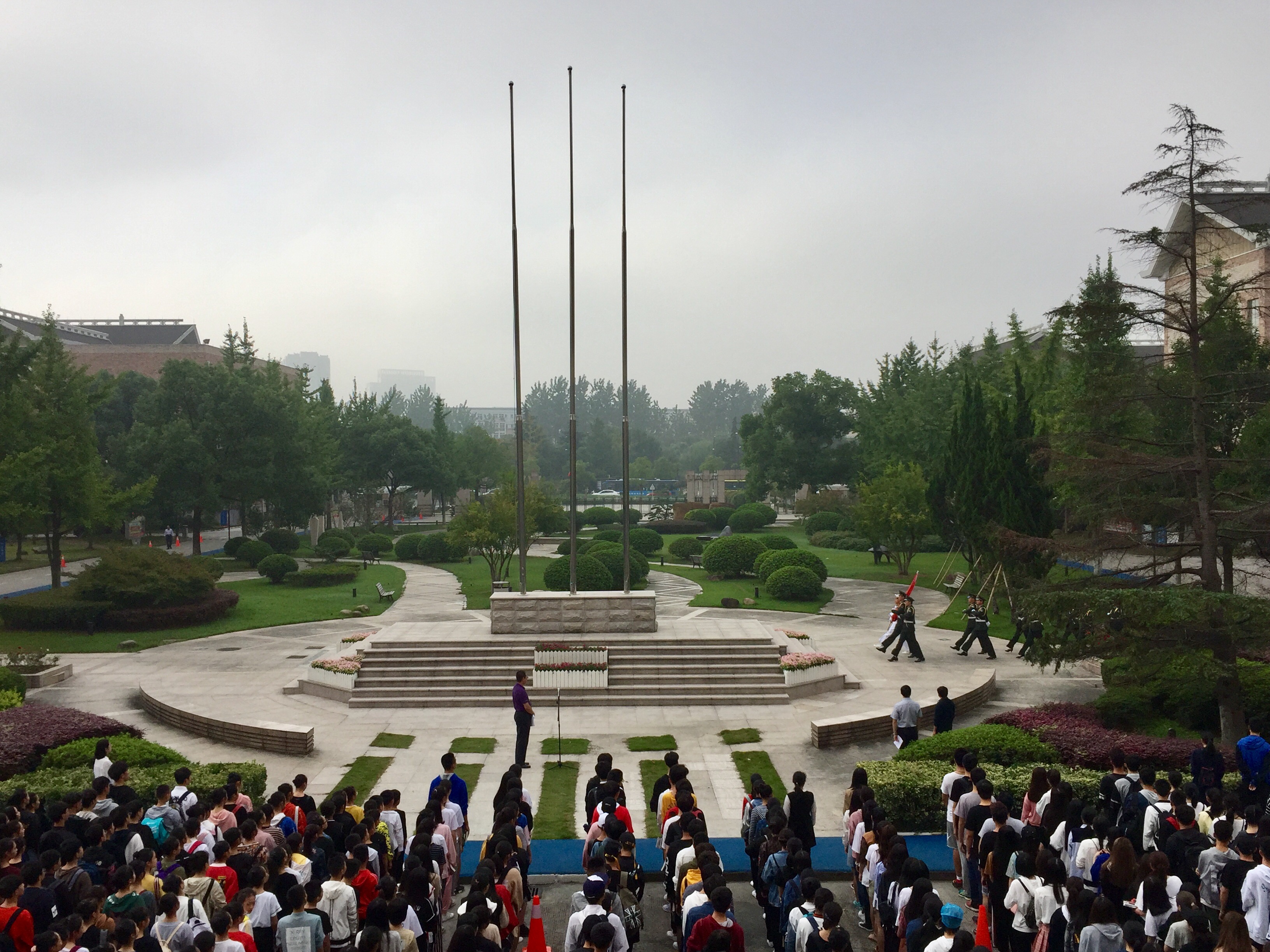 10月9日上午,2017-2018学年首次升国旗仪式在学院中心广场举行。院党委委员、副院长夏开堂出席仪式并讲话,宣传部、教务处、各系党总支、团总支负责人和1000余名2017级大一新生代表参加了升旗仪式。学工部(主持工作)副部长陈毅主持仪式。