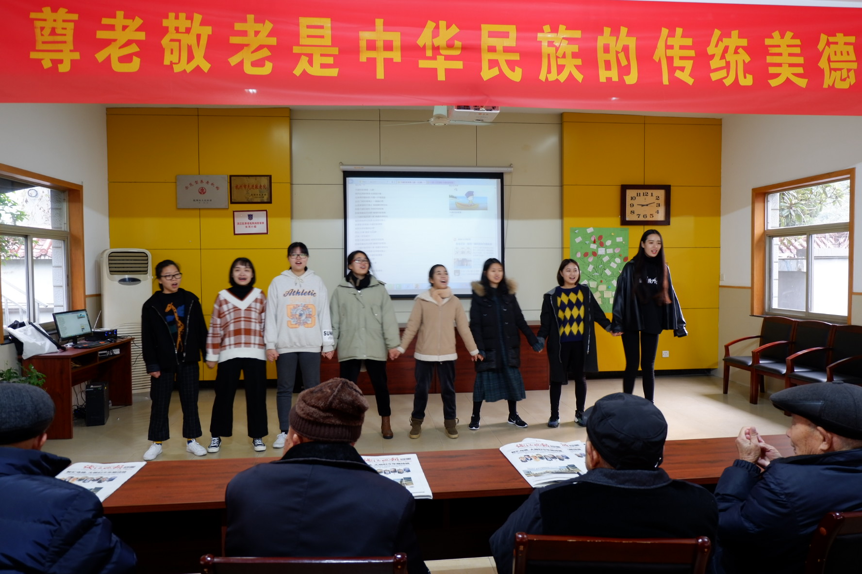 为弘扬中华民族尊老、敬老的传统美德,12月3日上午,东冠校区学生会组织志愿者前往滨江区长河街道敬老院开展“树敬老尊贤 弘传统美德”志愿服务活动。