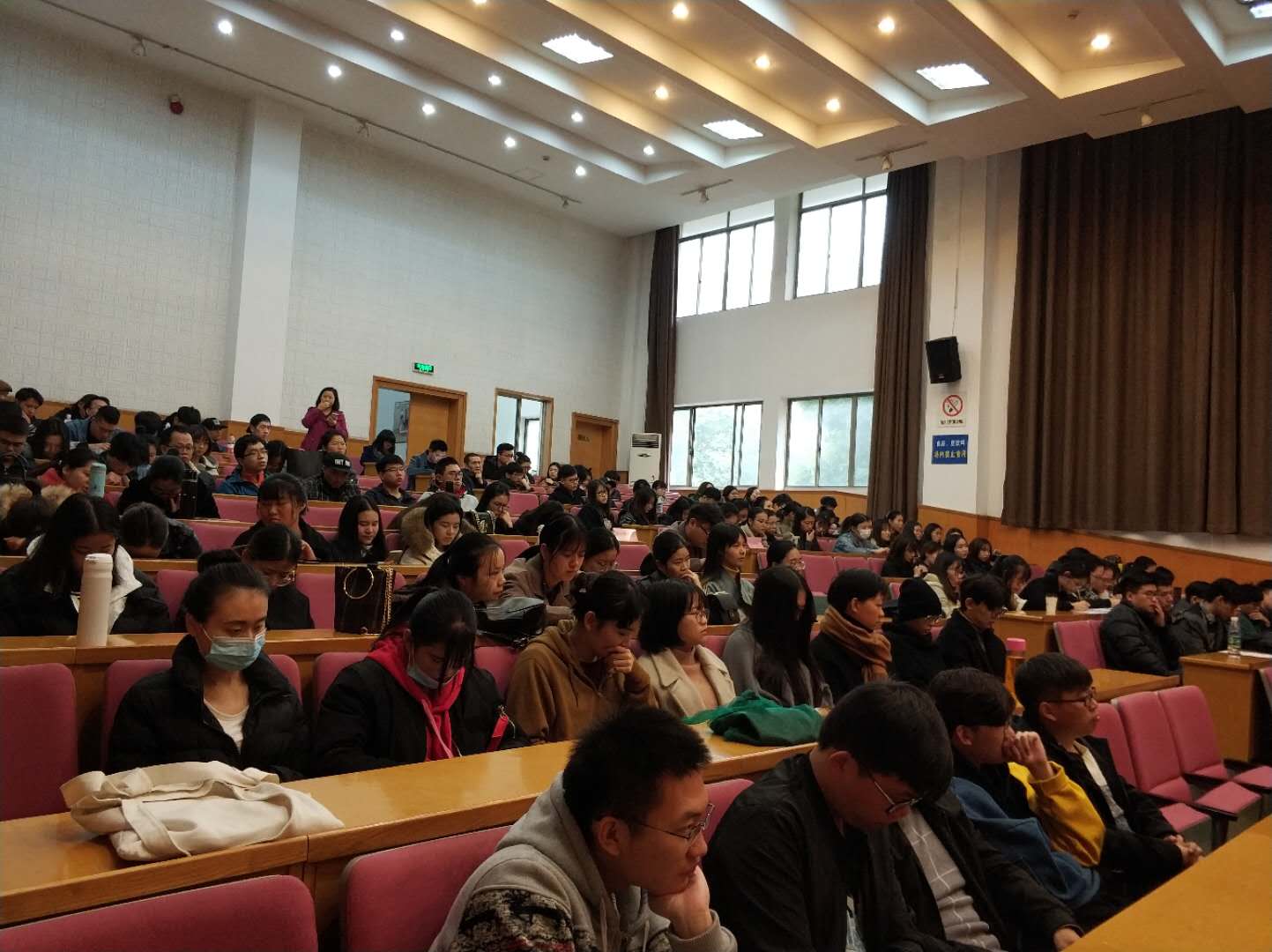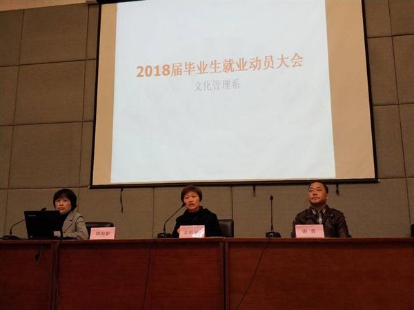 1129日中午,文化管理系2018届毕业生就业动员大会在图信中心报告厅举行。系主任谢青、金银琴、辅导员胡海影出席动员大会并发表讲话。文管系18届全体毕业生参加会议。