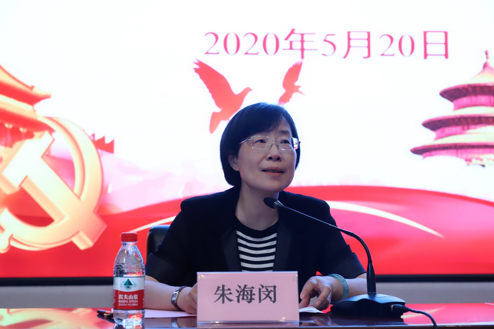 朱海闵致开幕词,与同学们一同回顾了影视技术系首届“争做新时代红色影视追梦人”红五月文化节的精彩点滴,并对影视学子提出了三点希望。第一,自觉做红色基因的传承者。红色,是深植于中国共产党人精神家园的精神基因,也是我们影视追梦人鲜亮的底色。作为新时代影视工作者后备力量的同学们,应该自觉肩负起传承红色基因的文化责任。同学们需要充实思想养分,将影视创作与生产聚焦于国家更加富强、民族走向复兴的探索实践,聚焦于一代代人为民族独立而战、为祖国繁荣献身、为幸福生活奋斗的卓绝努力,聚焦于中华民族实现从站起来、富起来到强起来的历史飞跃和光明前景。第二,自觉做中国故事的传播者。在疫情防控的大考中,我们更为深刻地感受到了中国特色社会主义国家制度、国家治理体系的鲜明优势,浙艺师生也在宅家战疫期间齐心战疫、共克时艰完成了50余部抗疫作品,其中也有不少影视师生的身影,我们有理由用更加扎实的理论功底、专业功底以及丰富的艺术语言,讲好中国故事。第三,自觉做重要窗口的建设者。习近平总书记在考察浙江时提出了“努力成为新时代全面展示中国特色社会主义制度优越性的重要窗口”的新目标、新定位,相信满怀朝气的影视学子一定是未来“重要窗口”的生力军,希望同学们能真正立足“红五月”的优质平台,在接下去的微型党课、学生党员示范岗选树、“抗疫情 寻找身边的感动”随手拍等活动中,彰显浙艺影视青年的良好素养、优秀品质及自觉担当。