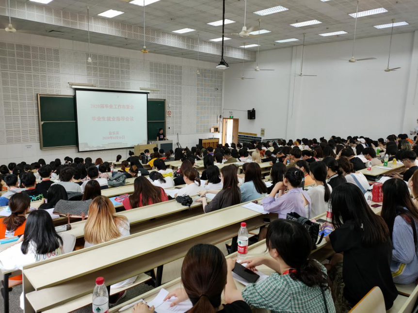 为进一步提升音乐系2020届毕业生的就业意识与技能,引导学生正确认识今年的就业形势,及时调整就业观念,抓住机遇,实现尽早就业,2020年6月16日上午,音乐系在学校阶梯二教室举行2020届毕业生就业指导讲座。音乐系党总支常务专职副书记谢志勇,毕业生辅导员、毕业生班主任和262名应届毕业生参加。
