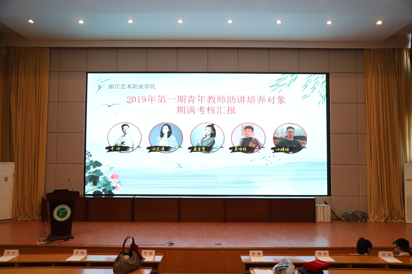 1029下午,浙江艺术职业学院2019年第一期青年教师助讲培养对象期满考核汇报在图信中心报告厅进行。5位培养对象参加了此次汇报,他们分别是戏剧系青年教师王皆慧齐帅;美术系青年教师江腾皓、吴炜栋音乐系青年教师沈文潇。浙江艺术职业学院院长黄杭娟、党委副书记夏开堂,相关职能部门负责人和各教学单位负责人担任此次汇报评委进行现场评审