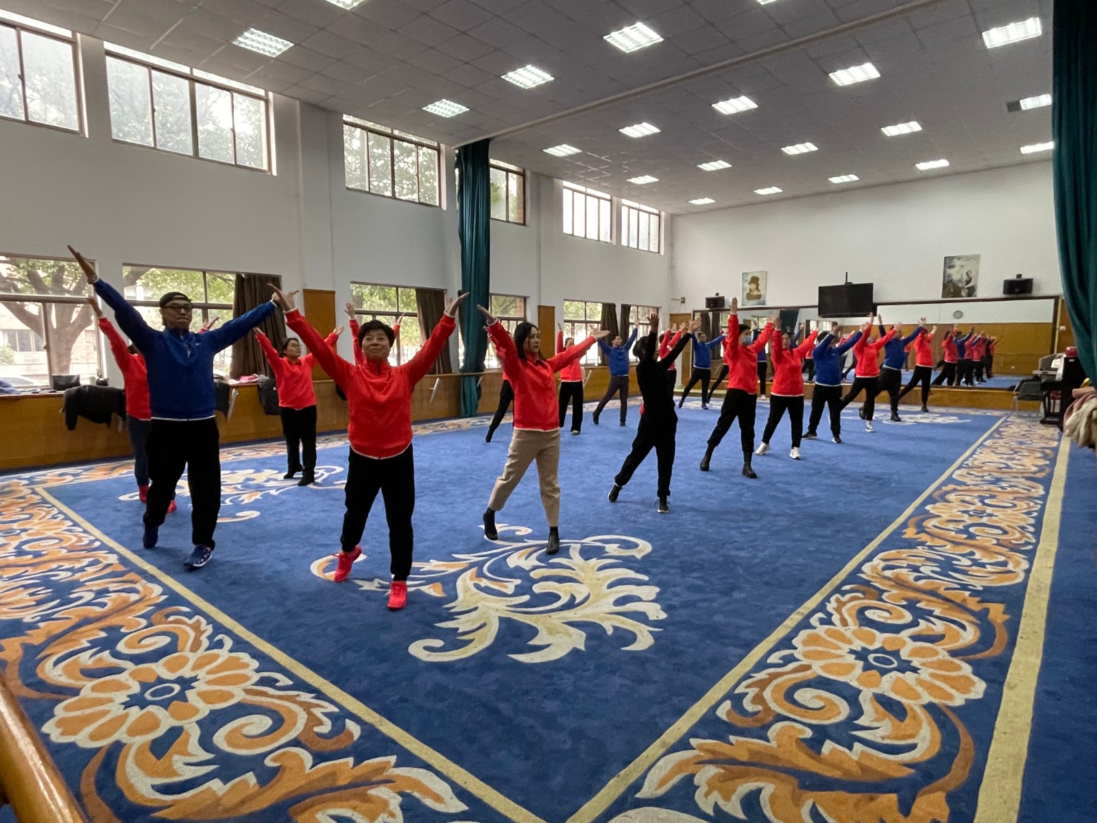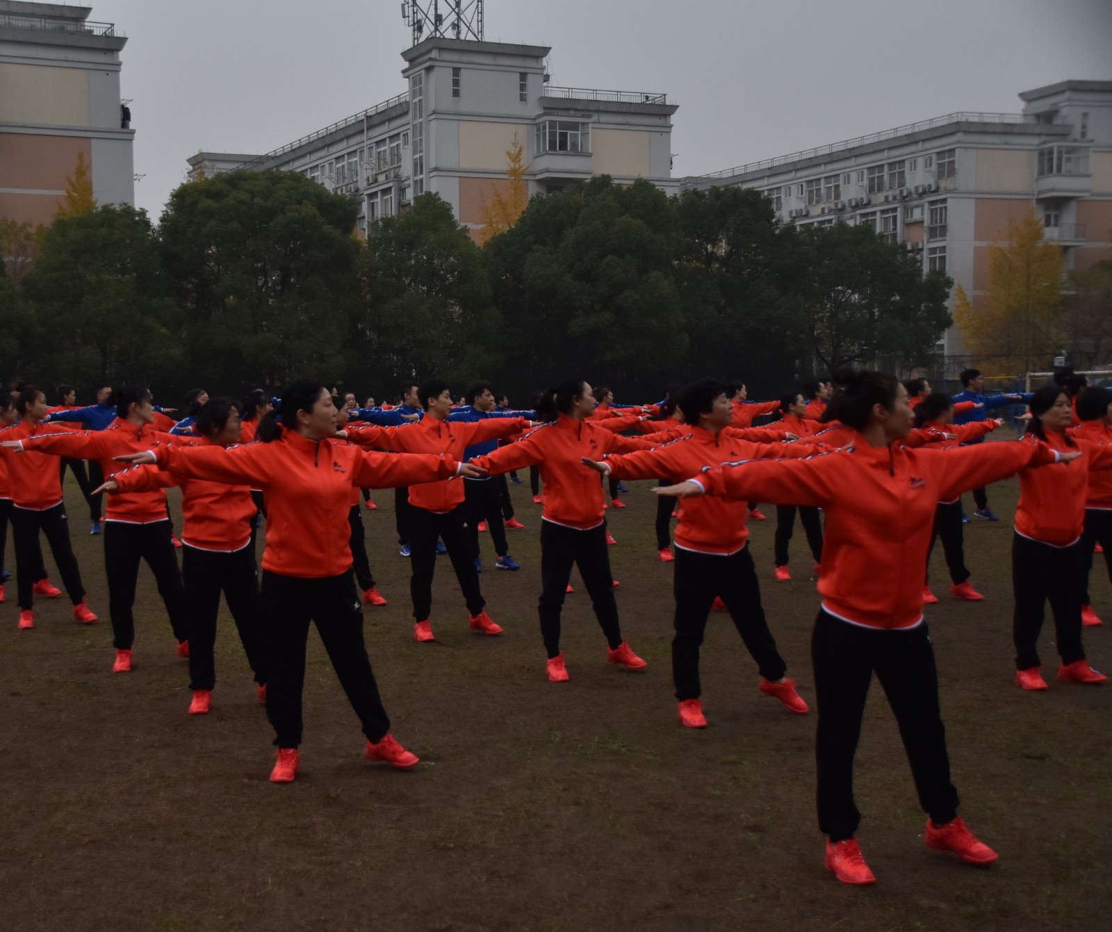 瑟瑟寒风挡不住老师们的激情。戏剧系全体教职工身着统一服装,踏着整齐的步伐,齐喊“凝心聚力,双高建设;奋力打造,重要窗口”走向主席台。做操时,老师们动作娴熟到位,每一次摆头都干净利落,每一次伸展都张弛有度,每一次踢腿都刚劲有力,彰显了戏剧系教职工意气风发、团结共进的精神风貌。