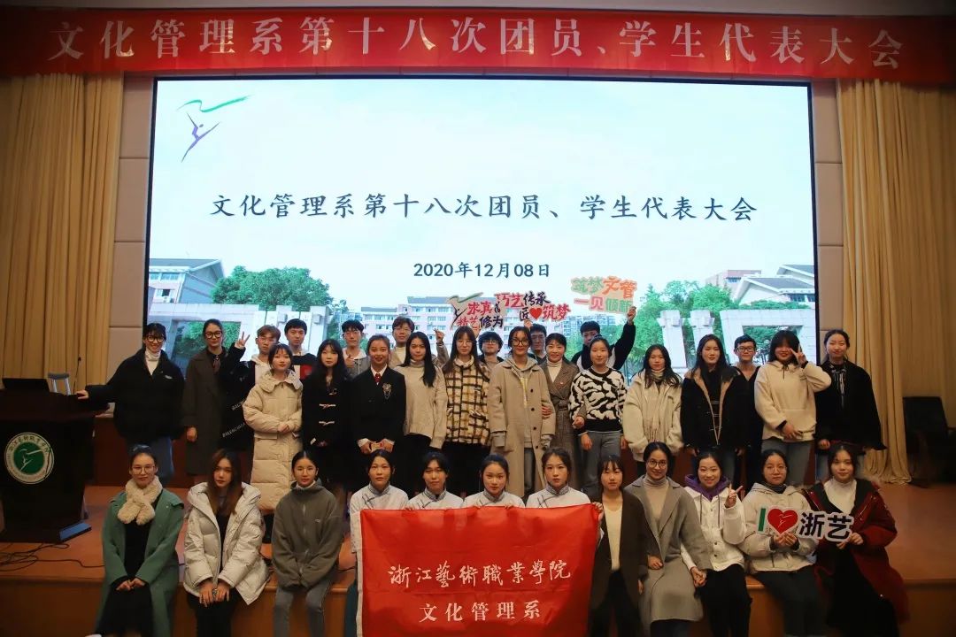 最后,文化管理系党总支书记金银琴宣读了大会选举产生的文化管理系第十八届团学委员会委员名单。随着铿锵激昂的团歌声,大会顺利闭幕。