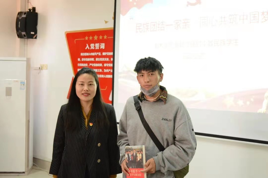 党员教师为结对的少数民族学生亲切交流,并赠送了书籍,师生们互留联系方式并合影留念。