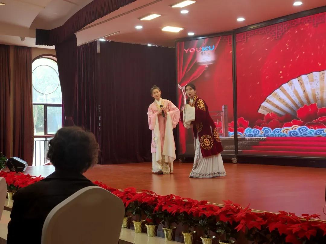 在上城区残健同庆建党百年迎亚运文艺会和“金色年华”老年公寓志愿服务演出中,悠扬婉转的戏曲唱段、激情洋溢的钢琴演奏、深情感人的小组唱……让人目不暇接。戏曲学院师生们带来了精心准备的越剧经典折子戏《碧玉簪·送凤冠》《梁祝•十八相送》《春香传·爱歌》,受到观众们的热烈欢迎。台上,形式多样的节目精彩纷呈;台下,观众们跟随节奏鼓掌、互动,其乐融融。当老人们听到熟悉的唱段时,情不自禁跟唱起来。同学们说,虽然已经历过不少演出,但老人们脸庞上洋溢的笑容,残联成员们对生活和艺术的热爱,让大家觉得特别温暖和感动。