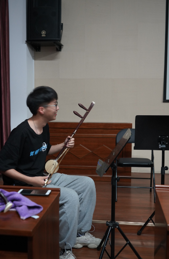 高扬表示,只有把握好二胡的“换弓、换弦、换把”三种技术,才能很好地将音色统一。注重音乐的四要素:音准、节奏、强弱、音色的训练,才能诠释好红色主题歌曲。同时,也提到了“一万小时天才原理”,提醒同学们只有刻苦练习,才能换来舞台上的精彩呈现。