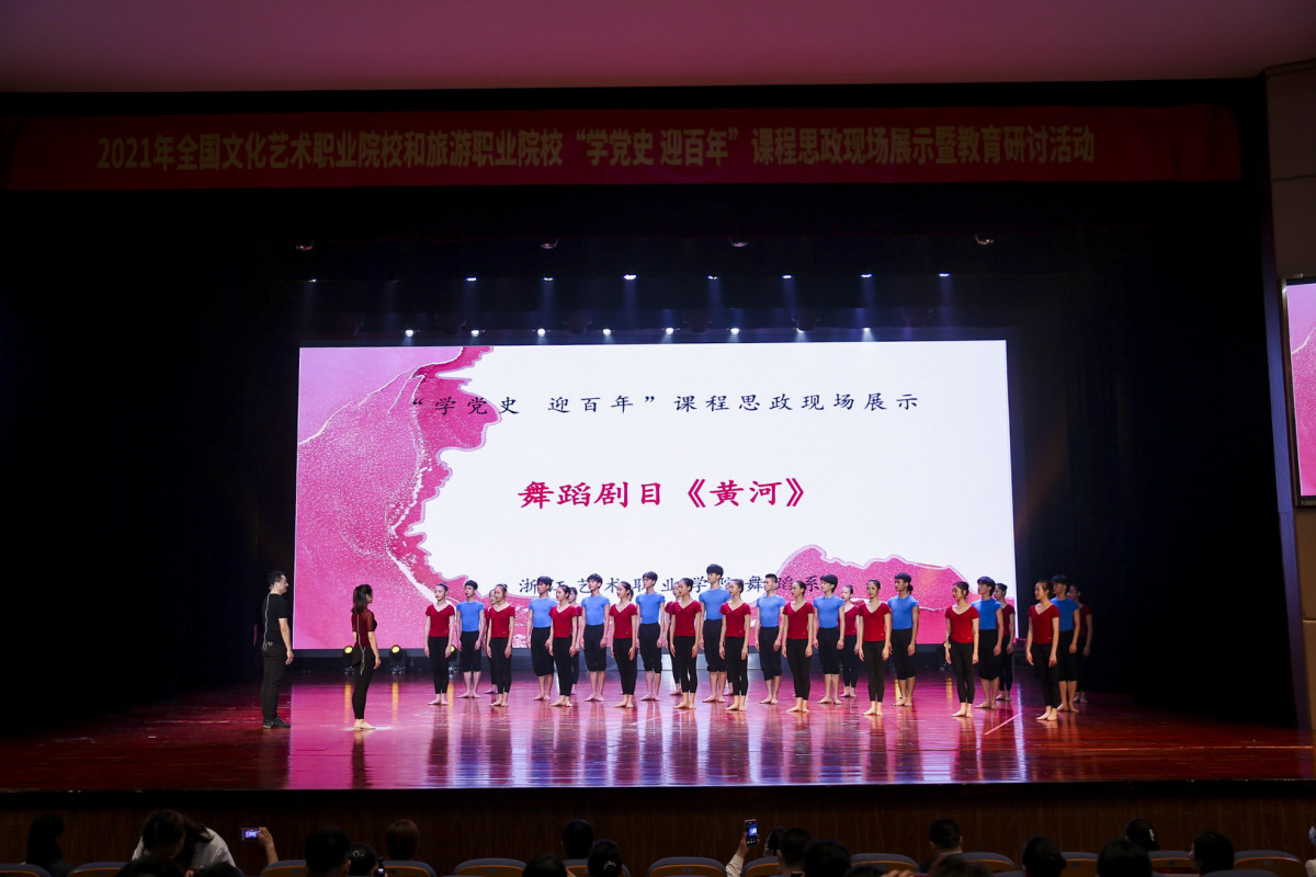 617日,全国文化艺术职业院校和旅游职业院校“学党史 迎百年” 课程思政现场展示暨教育研讨活动在浙江旅游职业学院举行,我校舞蹈系的剧目课《“崇德善舞、精艺修为”——<黄河>第四乐章课程教学》被评为“优秀课程”,并进行现场展示,获得好评。