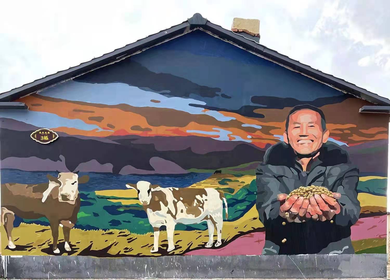 很荣幸这次带队参与阿尔山乡村墙绘艺术大赛,我们的创作响应本次大赛的主题“百年征程与梦想”、“脱贫攻坚与乡村振兴”“阿尔山的风情”“艺术让乡村更美好”的进行构思。这是我们一行所有人第一次来到西口村,这里一望无际的原野和雄伟壮丽的浩瀚场面,南北风光的迥异,繁忙城市和宁静村庄的两种生活方式的切换,都让我们一行人产生强烈的创作欲望。这次创作不仅丰富了这里的文化,也增加了同学们行万里路,了解祖国河山的人生阅历,是一种很好的教学方式,能帮助同学们更好的成长。