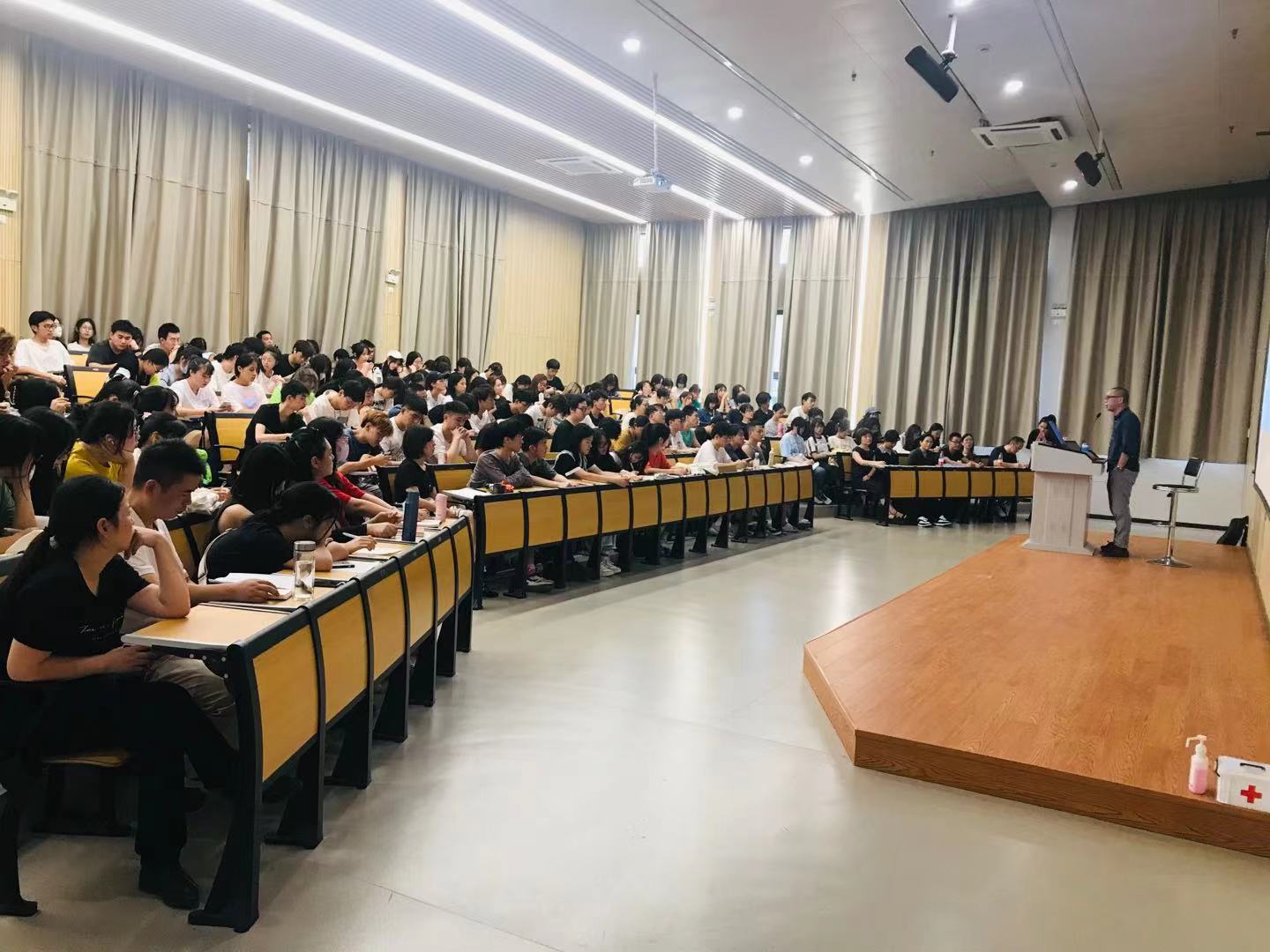 讲座中,阶梯一教室座无虚席,师生们受益颇多,不时对郑嘉励的讲解抱以热烈的掌声。在讲座的最后,系主任刘秀峰对师生寄语,希望大家能从郑嘉励对“宋韵”的解读中受到启发,在今后的作品创作、综合展演季等工作当中,做出更多有益的思考和探索。