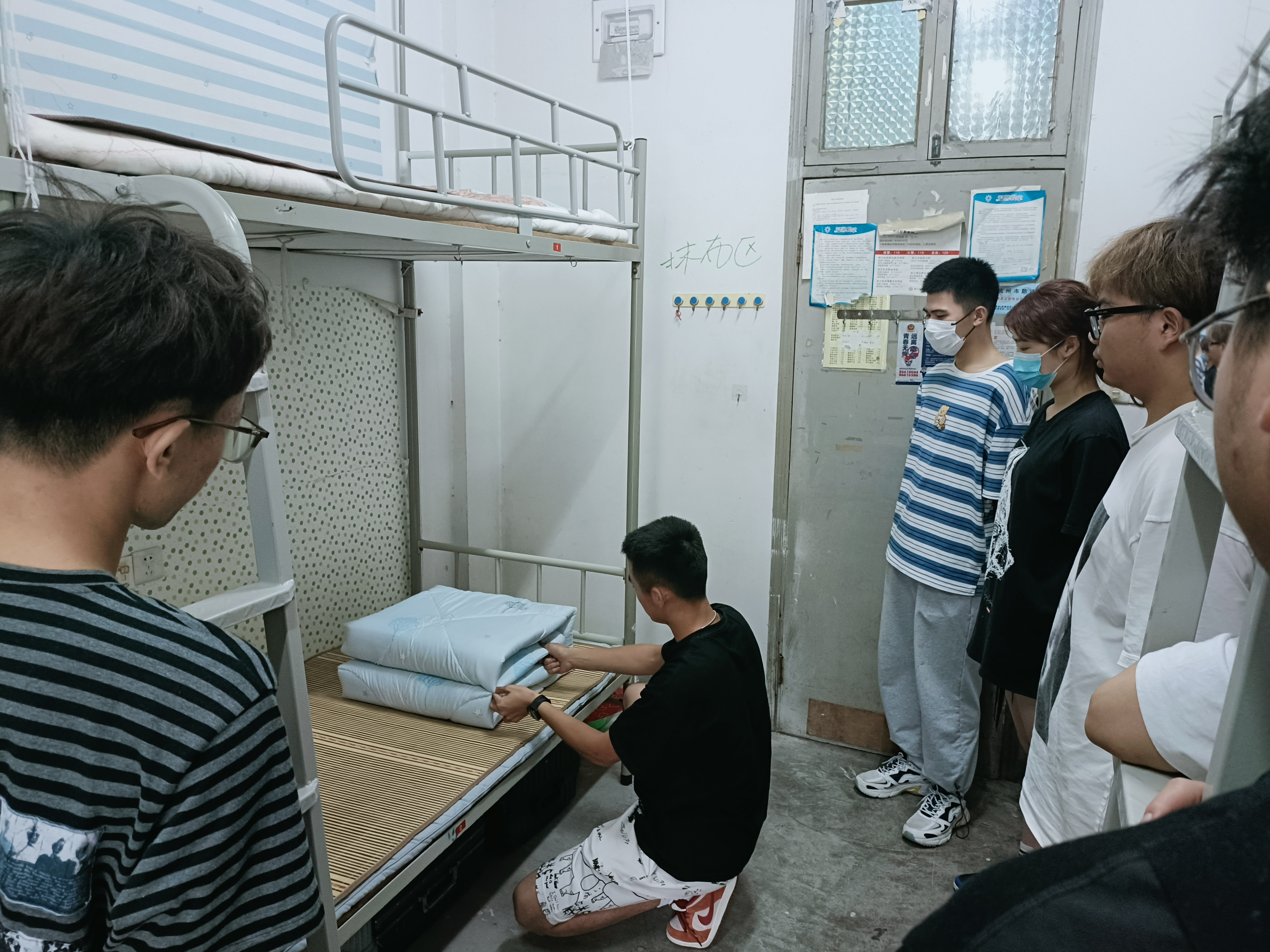 9月15日,文化管理系邀请三位退伍军人为21级新生现场教学寝室内务整理方法。引导新生养成良好的生活习惯,营造整洁舒适的生活环境。