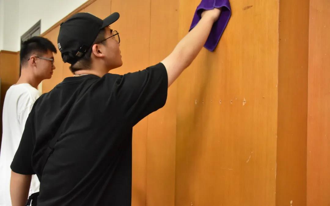 动员结束后,戏剧系同学们在老师的带领下,共同参与包干排练厅的打扫,从地面、窗户、墙壁,到花瓶、桌椅等各类道具,从分类归置到细致擦拭。在大家同心合力的辛勤劳动后,所有排练厅焕然如新,窗明几净,光彩夺目。