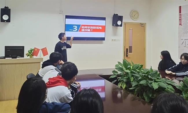 各班班主任采用案例讲解、视频学习等形式,围绕“什么是电信诈骗”“电信诈骗的常见形式”“如何识别防范电信诈骗”“上当后的补救措施”等内容对21级高职及本科新生进行了防诈骗安全教育。