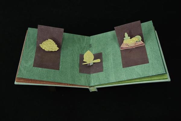 书本以古书形式制作,以绢布封面,棉轴线绷书,自右向左翻阅。书中内页背景用水印版画形式绘制,再用古法浆糊绷至纸板上,书中文字以墨上板水印至纸,图案以水印至生宣纸上,晾干,蒸纸固色后,用浆糊粘至卡纸上,压一日后,沿边剪下,粘至纸板,一些小场景与现代立体书小机关相结合,呈现立体效果。