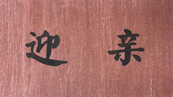 亲迎,以石榴裙色为背景色,“石榴裙”寓意着色挟石榴之红,裙带美人之姿。石榴籽象征着子孙兴旺,石榴花喻示着女性之美。从古至今,亲迎当天是女人一辈子中最美的一日,以“石榴裙”暗示女子的美。