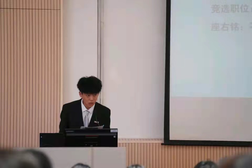 系第十九届学生会执行主席胡凯欣汇报系第十九届学生会工作报告。