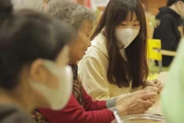 在活动中,同学们积极发挥专业优势,与老人共同完成手工花制作,拉近了彼此的距离。