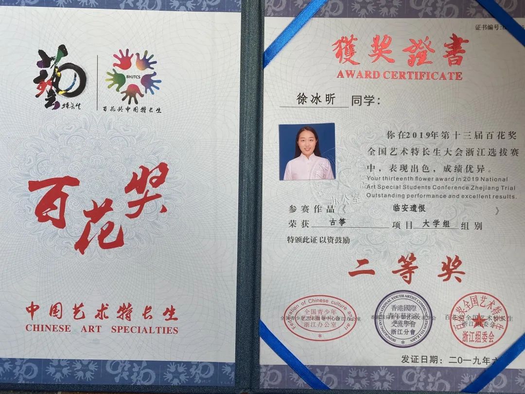 第十三届百花奖全国艺术特长生大赛浙江赛区 古筝大学组 二等奖