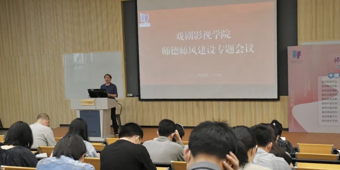 为加强师德师风建设,强化网格化管理机制,4月26日中午,戏剧影视学院在阶梯一教室召开师德师风建设专题会。会议由戏剧影视学院党总支专职副书记许瑛主持,全体教职工参加。