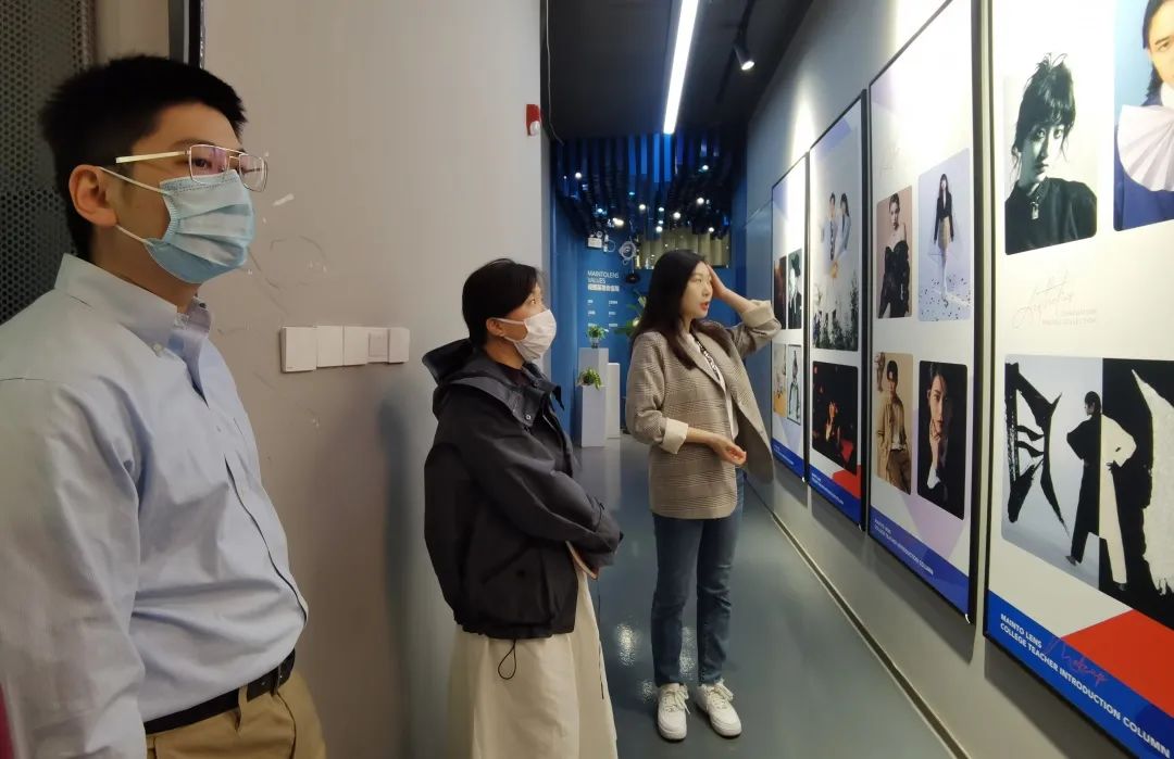 调研中,调研组听取了海马体莱思学院负责人的介绍,了解了企业经营状况、发展规划,并参观了企业的摄影棚、化妆间以及后期制作教室等实践场所。