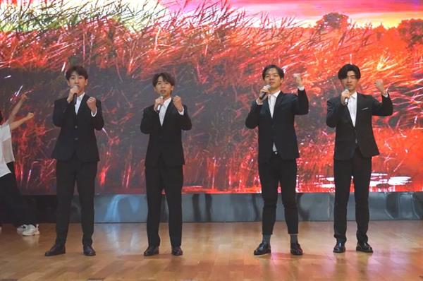 20歌舞班沈娅如、潘颖欣、朱硕、蔡依娜带来的演唱《采茶舞曲》,耳熟能详的旋律响起,悠扬的歌声配合上惟妙惟肖的采茶动作,让观众们体会到了“茶山云雾绕,茶香醉人心”的悠然意蕴。观众席上的爷爷奶奶们纷纷拿出手机记录着每一个精彩瞬间。