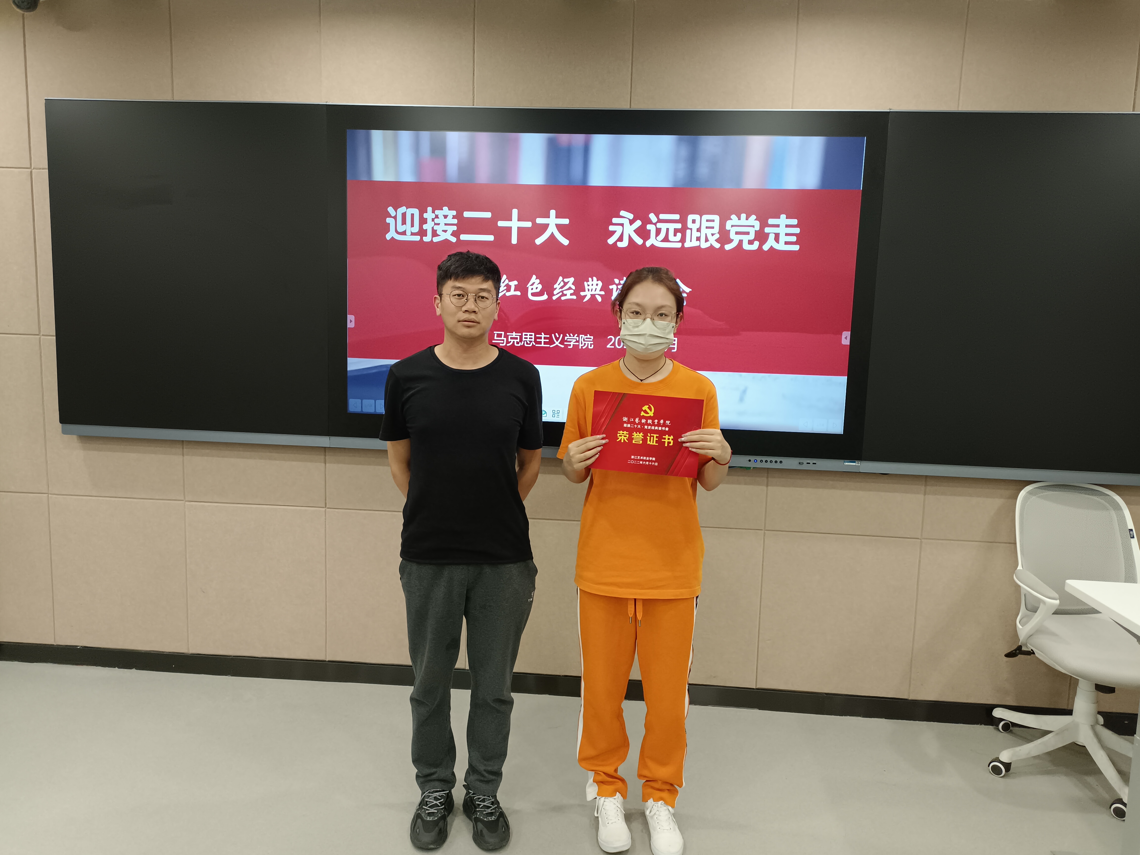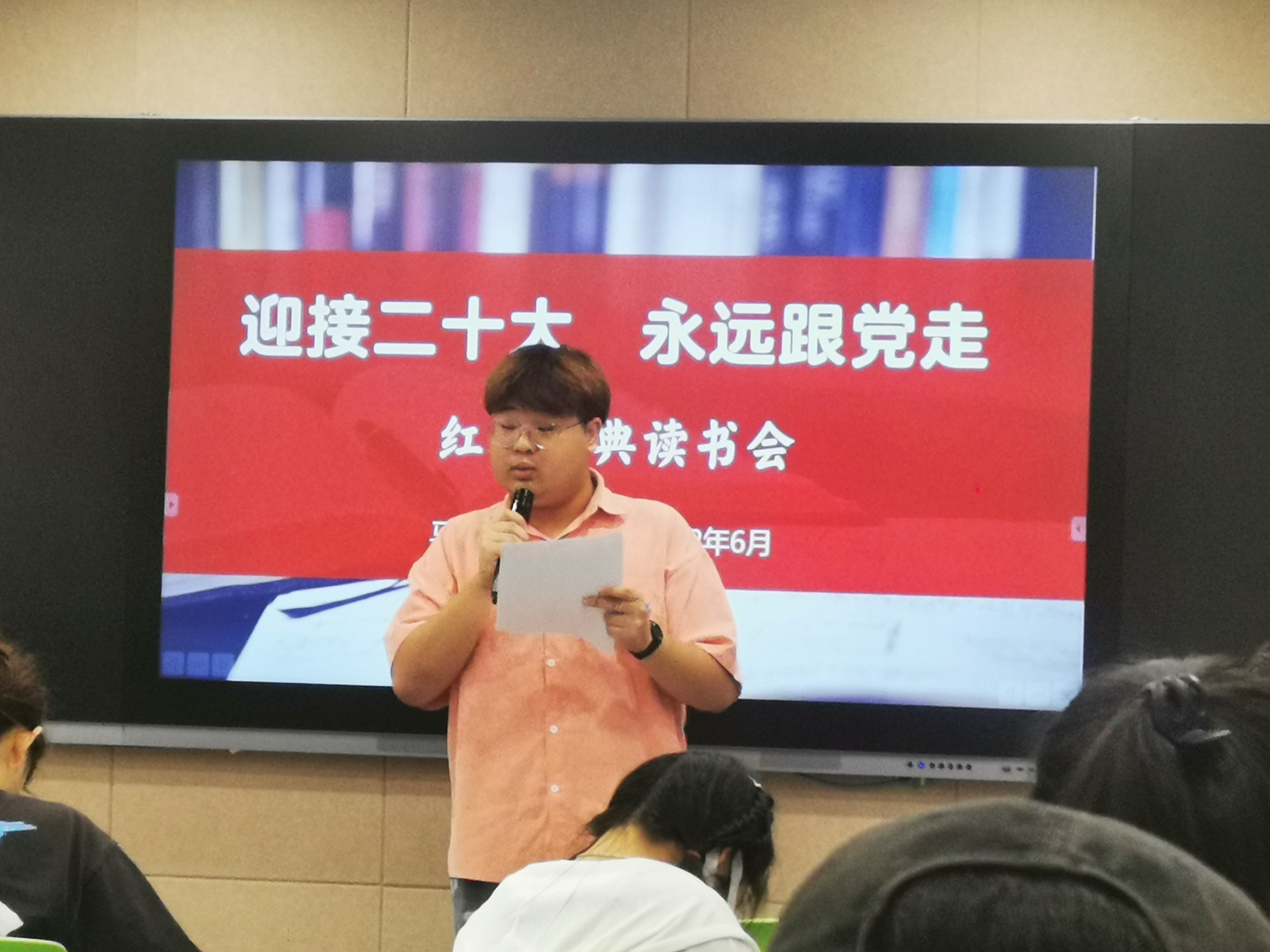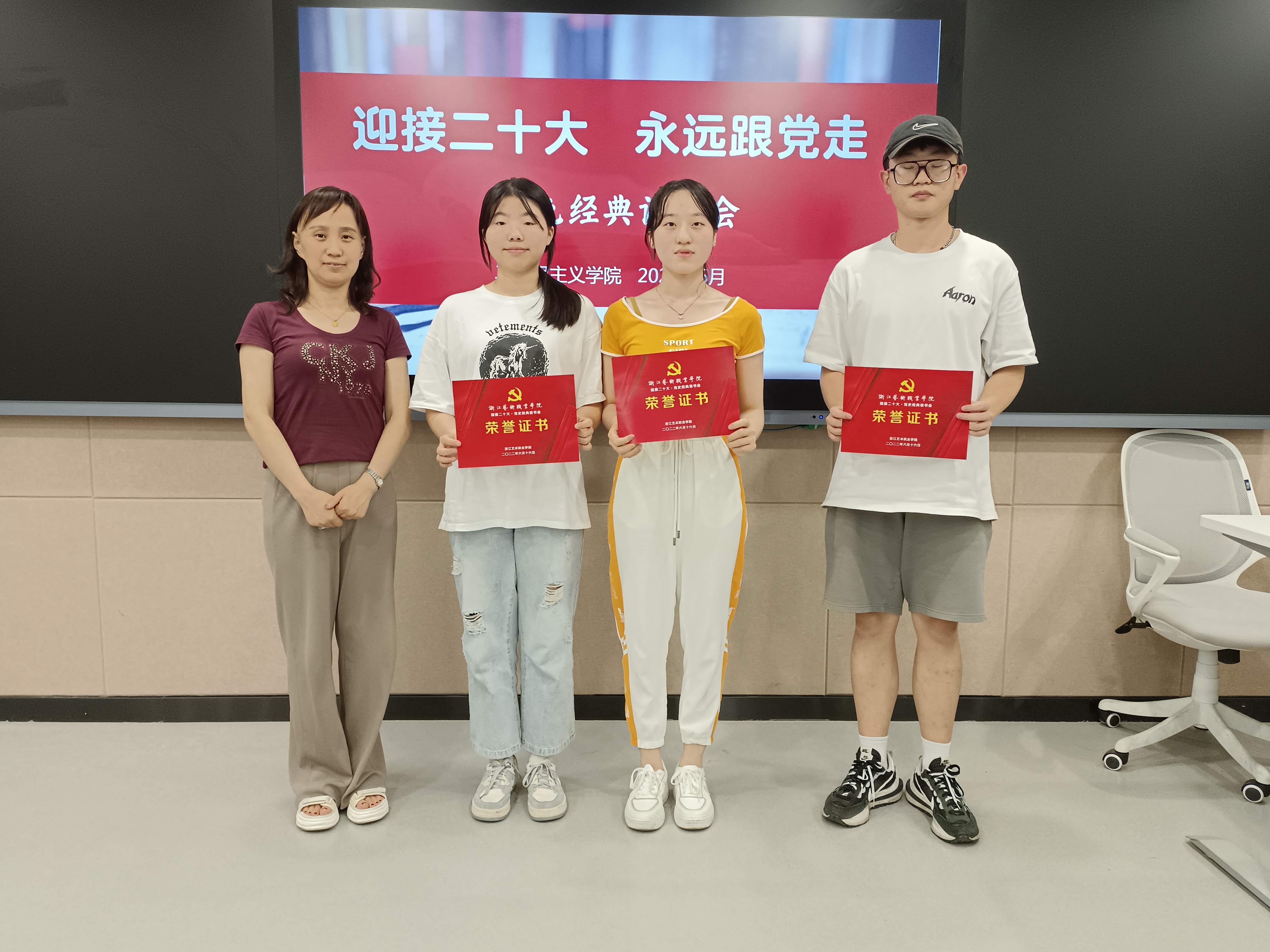 6月16日晚,浙江艺术职业学院“迎接二十大·永远跟党走”党史经典读书会在8707智慧教室举行。读书会以歌颂伟大建党精神、弘扬传承红色精神、传播中华优秀传统文化为主旨。活动前期,马克思主义学院组织全校高职以及本科班一年级学生读一本红色经典书籍、写一篇读后感,让同学们通过品读红色经典著作,来感悟时代变化,体味人生价值。同时,通过遴选优秀读书心得,进行分享交流。马克思主义学院直属党支部书记、副院长陈毅,副院长胡卓群以及基础教研室专兼职教师参加活动。