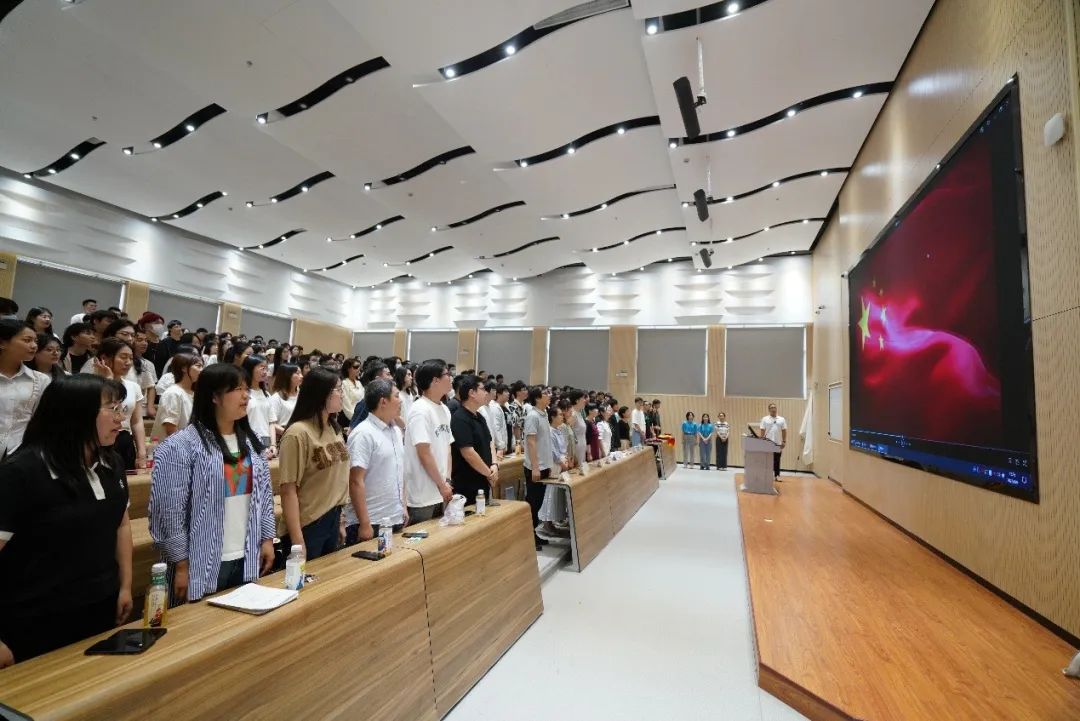 大会在庄严的国歌声中拉开序幕。
