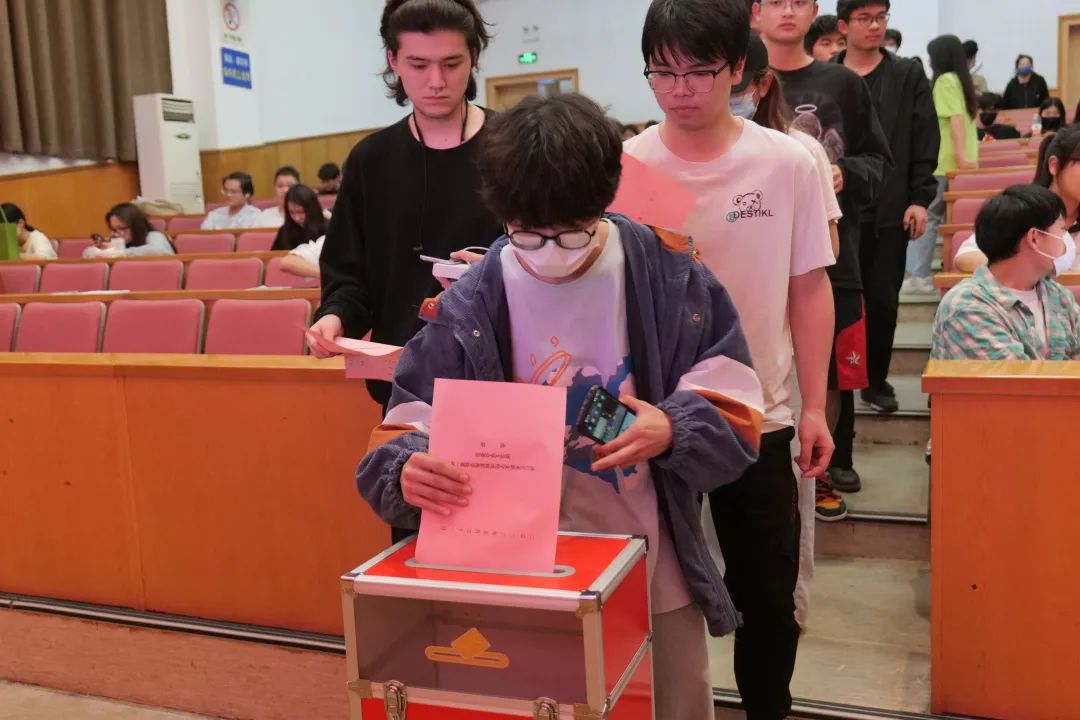 竞选演讲结束后,大会发放选票,学生代表们认真地勾选了心目中的委员人选,以无记名投票方式投出自己神圣而宝贵的一票。