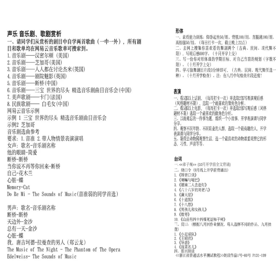 台词是展示剧情、刻画人物、体现主题最重要的手段,对于戏剧表演专业来说是一门极其重要的基础课程。在同学们各自展示了练习成果后,姚春宏、施杳杳两位老师进行了一对一的点评,老师认真严谨的态度不但让每位同学都认识到了自己的不足之处,更是让同学们对这门课有了更深刻的认识。老师们提出了殷切期盼,希望各位同学以积极向上的态度迎接即将到来的高中学习。