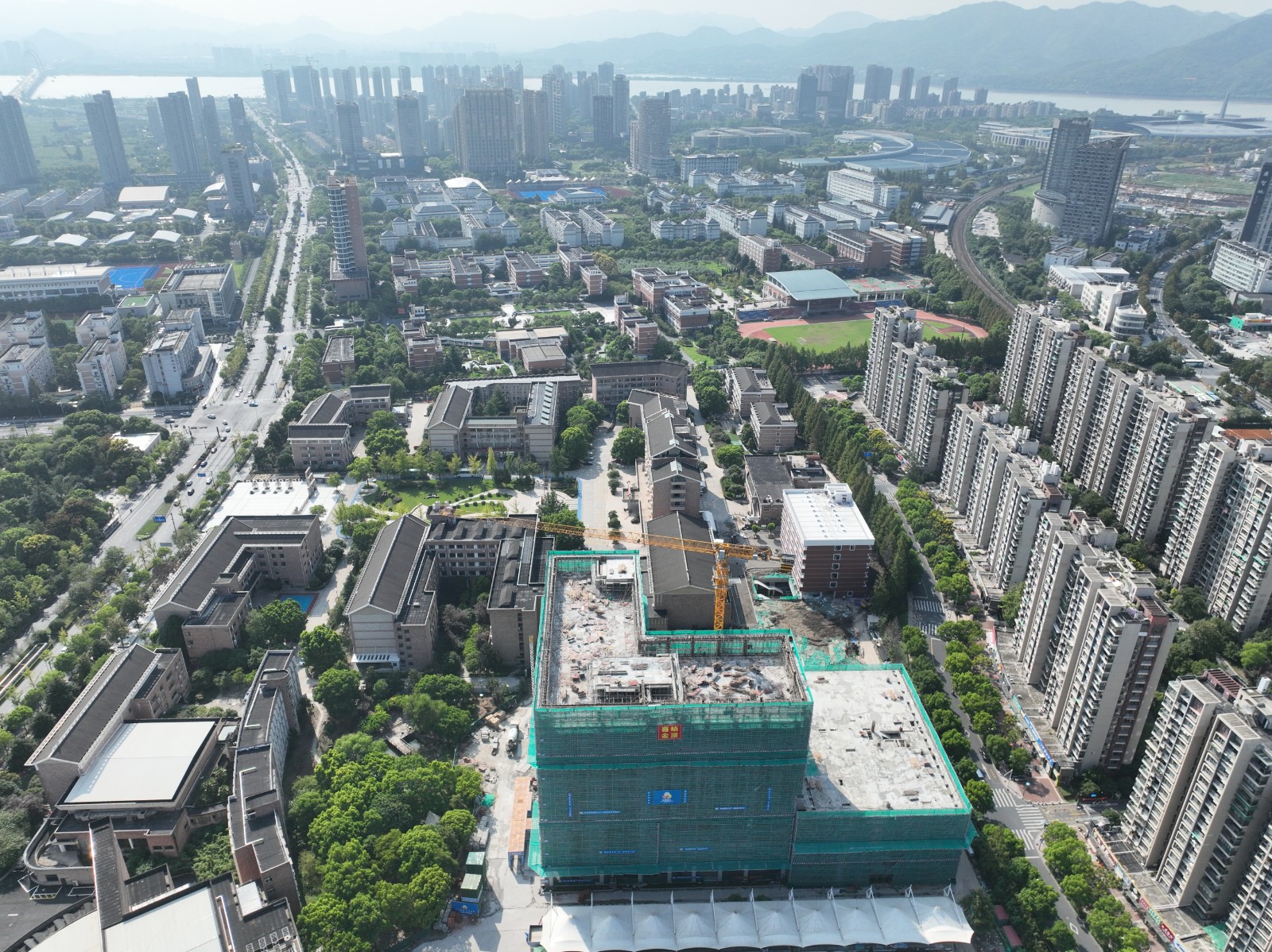 浙江艺术职业学院教学综合楼及学生宿舍楼建设项目在上级有关部门和滨江区住建局、规划局的关心支持下,历经650多天的奋战,于2022年9月18日顺利结顶,为该大楼在明年秋季开学投入使用打下坚实基础。