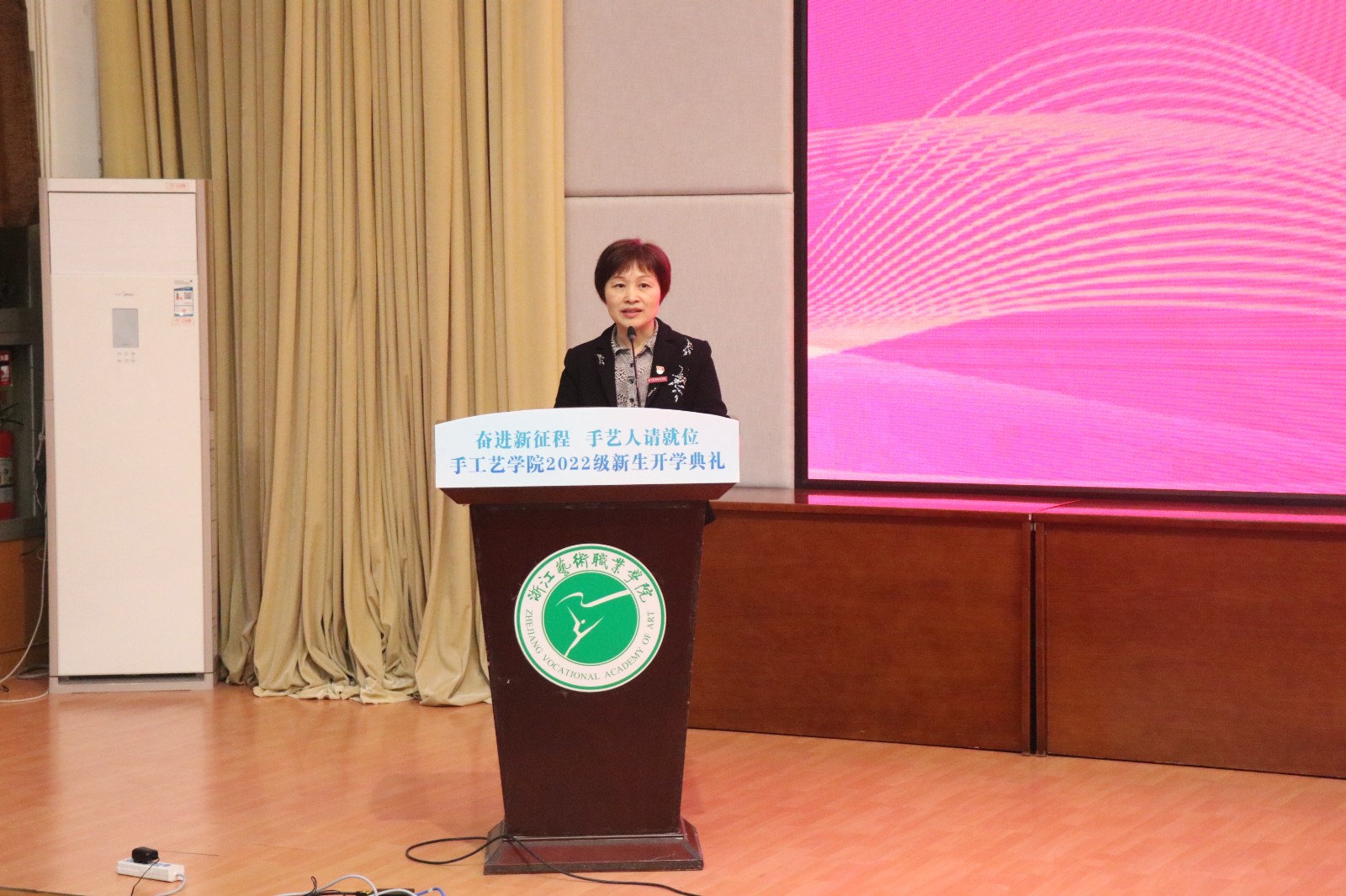 10月24日,手工艺学院2022级新生开学典礼在图信报告厅举行。校党委委员、副院长沈军甫,手工艺学院全体教师及2022级新生参加。典礼由手工艺学院党总支专职副书记王筱芽主持。