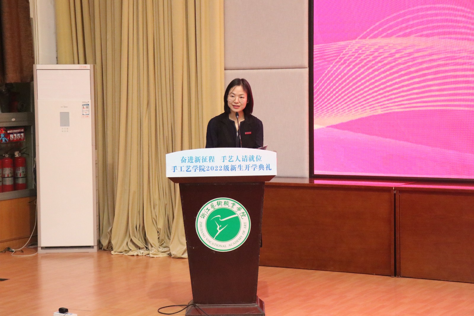 典礼现场,沈军甫代表学校对手工艺学院168位新生的到来表示欢迎。他表示手工艺学院秉承文化传承使命,坚持守正创新,致力于传统手工艺非遗传承。作为新时代的浙艺手艺人,应以青年之力、新人之姿,投入到非遗文化的保护与传承中去。他向新生学子们提出三点期望:一要永葆自律自强、坚定文化自信;二要乐于勤学善思,坚持守正创新;三要体悟非遗之美,弘扬传统文化。愿同学们坚守初心,在浙艺这个梦想开始的地方启航新征程。
