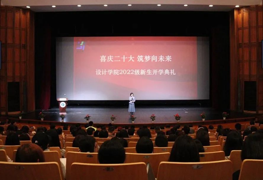 10月21日,设计学院2022级新生开学典礼在浙江艺术实验剧场隆重举行。校长黄杭娟,设计学院党总支书记汪琳,基础教学部(公共体育部)党总支书记郑园全,设计学院常务副院长李昌国,设计学院党总支专职副书记顾才铭,设计学院副院长何佳玮, 设计学院各专业带头人及教研室主任出席;设计学院全体专业教师、辅导员、新生班班主任及2022级新生参加。典礼由设计学院广告艺术设计专业教师娄旻主持。