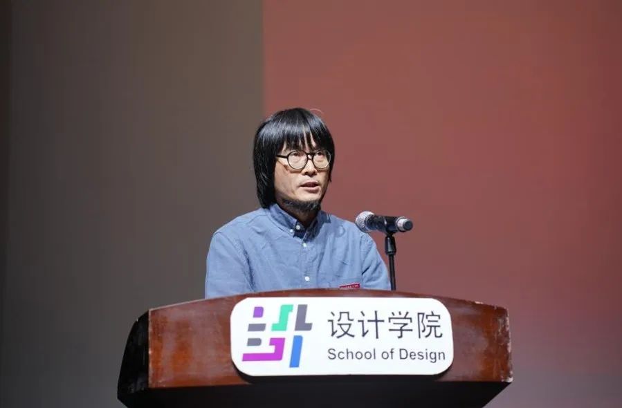 舞台艺术设计与制作专业教师吴放作为教师代表发言。他与同学分享了求学过程中的心得和见解,鼓励大家僭越专业的局限,有所感悟,有所追问,在浙艺这片沃土上汲取知识营养和精神力量,传播设计者的情怀和温度。