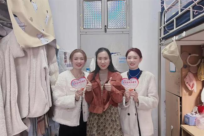 活动现场,党员教师还为结对寝室填写党员结对共建卡,为寝室学生送上党员寄语和祝福。仪式结束后,全体党员分别前往结对寝室走访查看,向学生了解近期学习、生活等的收获和问题,收集、帮助学生解决遇到的困难,并为宿舍学生宣讲党的二十大精神。