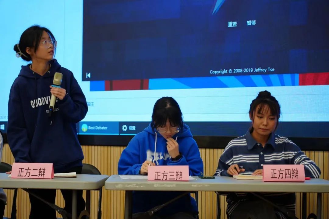 在激烈的辩论过程中,双方分秒必争,在有限的时间里提出有力论点、陈述具体论据,并对对方论点提出质疑。