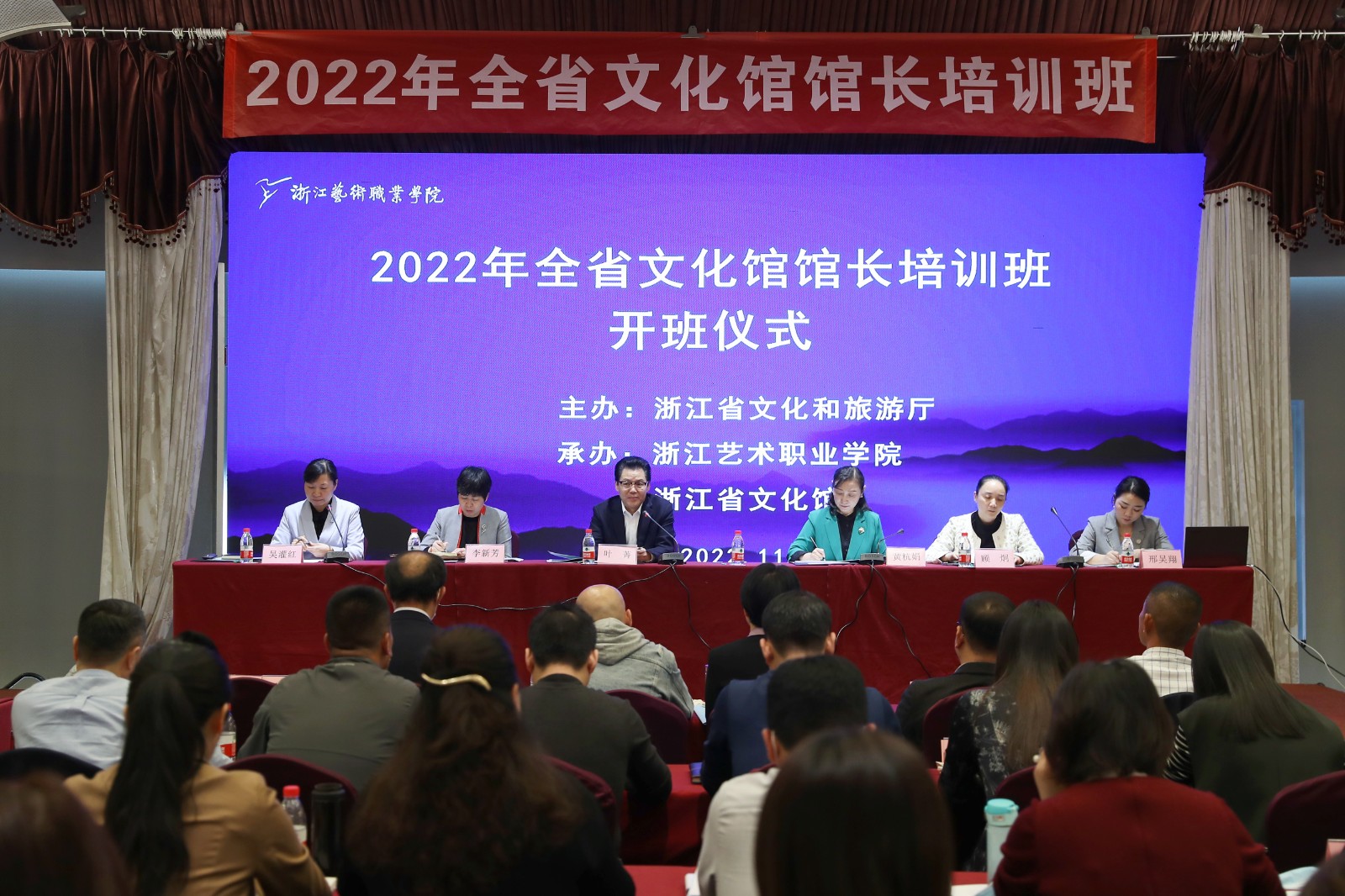 11月1日,由浙江省文化和旅游厅主办,浙江艺术职业学院、浙江省文化馆承办的2022年全省文化馆馆长培训班在杭州开班。浙江省文化和旅游厅党组成员、副厅长叶菁,浙江艺术职业学院党委副书记、院长黄杭娟等出席开班仪式,来自全省各市、县100余位文化馆馆长、副馆长参加培训。开班仪式由浙江艺术职业学院继续教育学院直属党支部书记、副院长吴灌红主持。