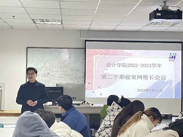 为规范寝室日常管理,落实学生网格化治理,助力校园文明建设,2月23日,设计学院召开2023年春季学期学生网格长会议,东冠校区综合办公室主任项瀚,设计学院辅导员吴铭湛、朱丹丹,设计学院各班级寝室网格长共同参加本次会议。