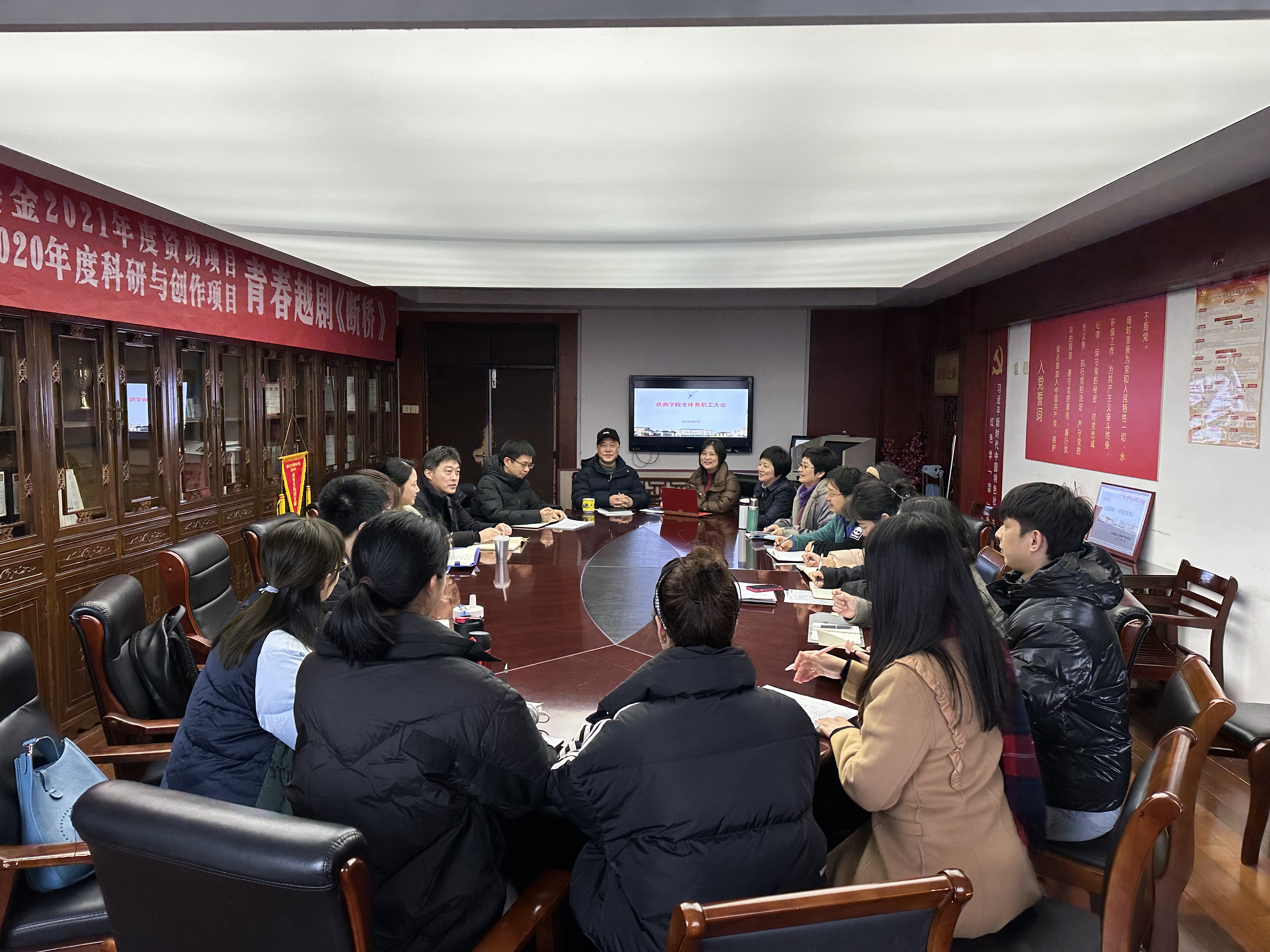 2月11日,2022-2023学年第二学期教职工报到的第一天,戏曲学院召开新学期教职工大会,集中学习习近平总书记重要讲话精神,总结2022年工作,布置春季开学疫情防控、安全生产和新学期专业教学等工作。戏曲学院全体教职工参加大会。