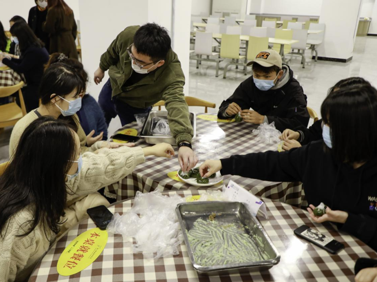 一口春天,一口青团。通过创意互动、谈心谈话、兴趣指导的方式,大家掌握了传统青团的制作手艺,也拉近了师生的距离,增进了同学们与“七号舍友”的师生情谊。