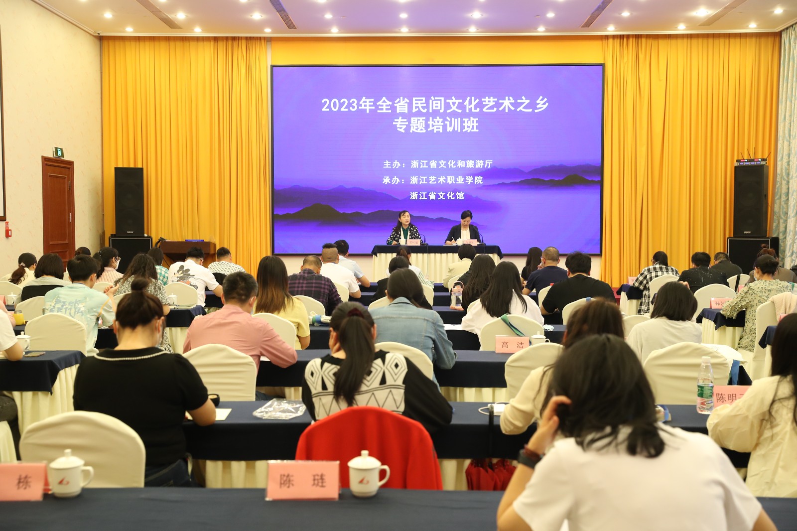 5月22日下午,由浙江省文化和旅游厅主办,浙江艺术职业学院、浙江省文化馆共同承办的2023年全省民间文化艺术之乡专题培训班在杭州开班。浙江艺术职业学院党委副书记、院长黄杭娟出席开班仪式并作开班动员。来自各市文旅局公共服务处、部分县(市、区)、乡镇(街道)“浙江省民间文化艺术之乡”业务工作负责人共80余位学员参加。仪式由浙江艺术职业学院继续教育学院党支部书记、副院长吴灌红主持。