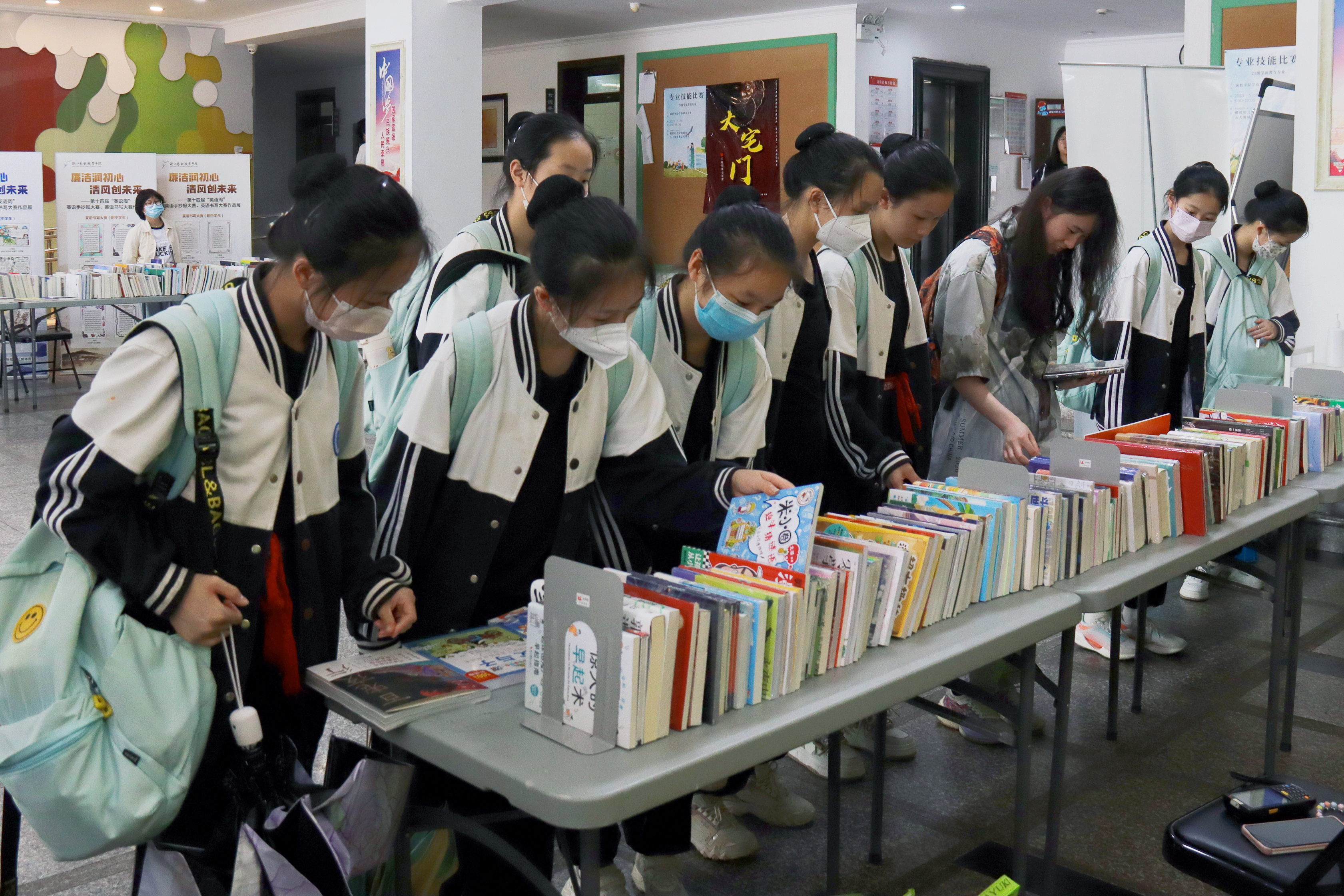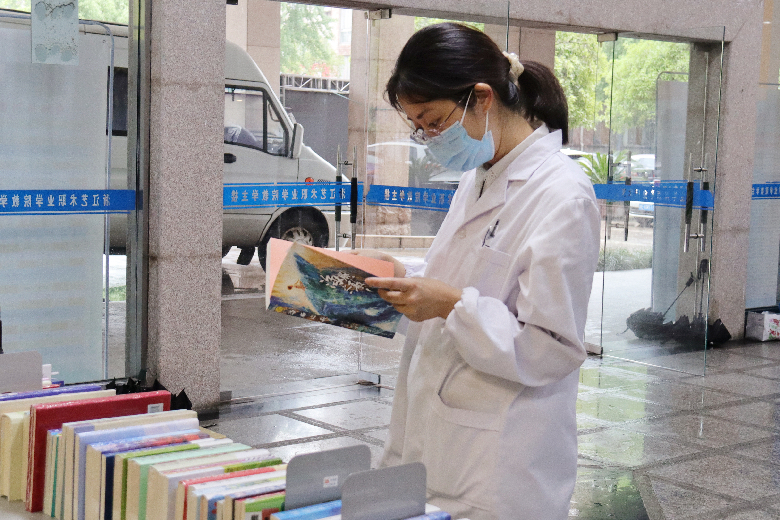 瓢泼大雨未能阻挡我校师生读书的热情。图书荐购活动吸引了众多师生前来,现场弥漫着浓郁的书香之气。师生们在展桌前驻足,拿起一本本书小心仔细翻阅,时而笑意盈盈,时而眉头紧锁,仿佛进入了一个别开生面的世界。